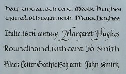 Carolingian, Black Letter Gothic, Copperplate and Italic).